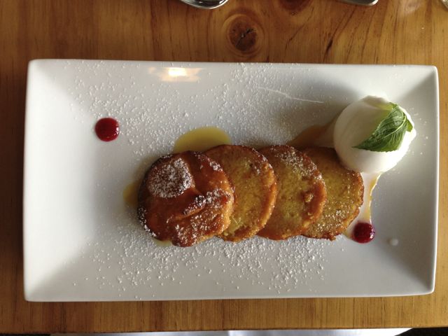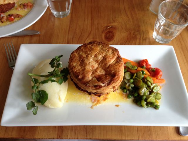 Tarte de Lapin et Truffe. Rabbit, ham & truffle pie served with a ménage of baby vegetables and pomme pureeI forget the name of the dessert & it’s not on their website. It’s an orange & almond cake & lemon sorbet. Very citrusy, but wonderful!